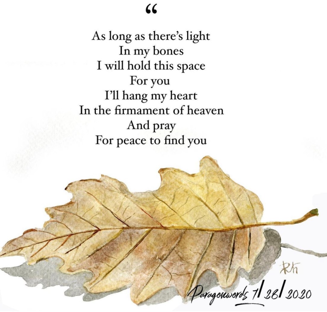 No one notice that the days are getting shorter, that hope is fading. No one seems to care. These days I notice everything. The whips of smoke that seems to spell your name in the sky. The sweet call of hummingbirds reminding each other of their undying love. The way memories taste like ash and licorice. There’s a fountain of pain that rises up within me, each one recounting my failures, my regrets, my past. The countless ways my heart wraps around dead words, trying to bring them back to life. This world once light me on fire, filled me with hope, kissed me each morning with it’s glorious beauty, now I search the days trying to find something worthy, something that will remind me that life is worth fighting for.