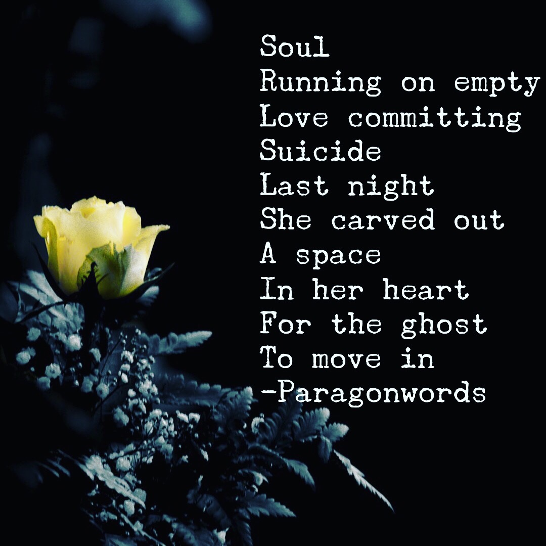 Poetry TodayLove committing suicide….. June 4, 2017 Paragonwords Share this: Share on Facebook (Opens in new window) Facebook More Share on LinkedIn (Opens in new window) LinkedIn Share on Pinterest (Opens in new window) Pinterest Share on Bluesky (Opens in new window) Bluesky Share on WhatsApp (Opens in new window) WhatsApp Email a link to a friend (Opens in new window) Email Like Loading...